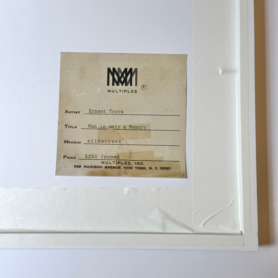 This print was published in an unsigned and unnumbered edition estimated to be less than 300 impressions and is stamped in black ink on the verso “Silk Screen from Banner by Ernest Trova © for Multiples Inc. 1969”, consistent with documentation from Multiples, Inc.