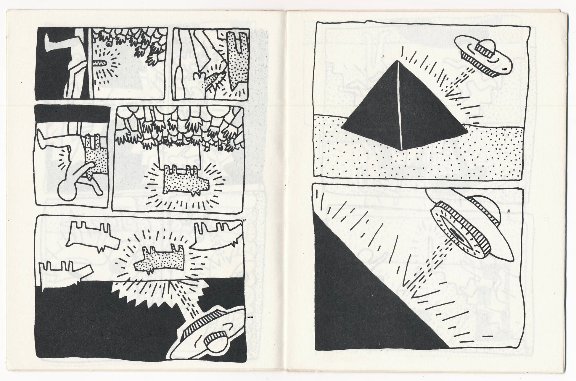 Rare 1982 Keith Haring self published book features offset lithograph images of Keith Haring's felt-tip drawings on paper, expanded from a series of nine works Keith Haring created for Public Illumination Magazine’s "Civilization Issue" under the pseudonym "Kip Herring".