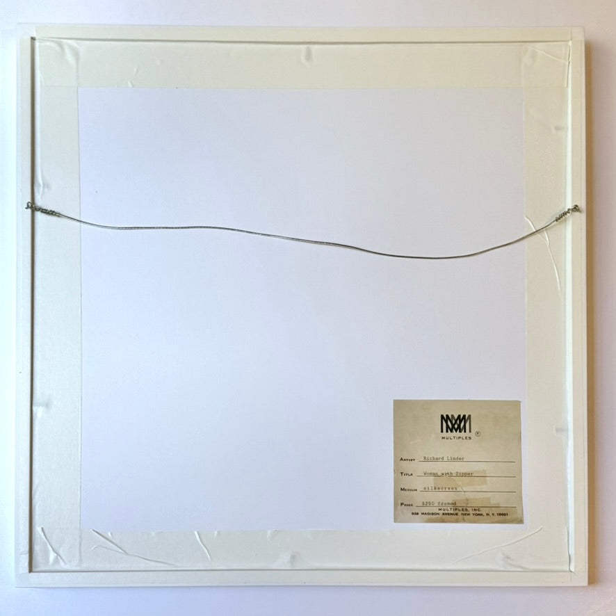 This print was published in an unsigned and unnumbered edition estimated to be less than 300 impressions and is stamped in black ink on the verso “Silk Screen from Banner by Richard Lindner © for Multiples Inc. 1969”, consistent with documentation from Multiples, Inc. This pristine screenprint is in museum quality condition floated in a white frame and is ready to hang and enjoy.